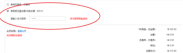 ??2.確認(rèn)用戶(hù)所需的送貨方式,下拉頁(yè)面勾選使用賞藝通余額支付,輸入支付密碼,點(diǎn)擊空白處校驗(yàn)支付密碼成功后,即可提交訂單完成本次購(gòu)票。