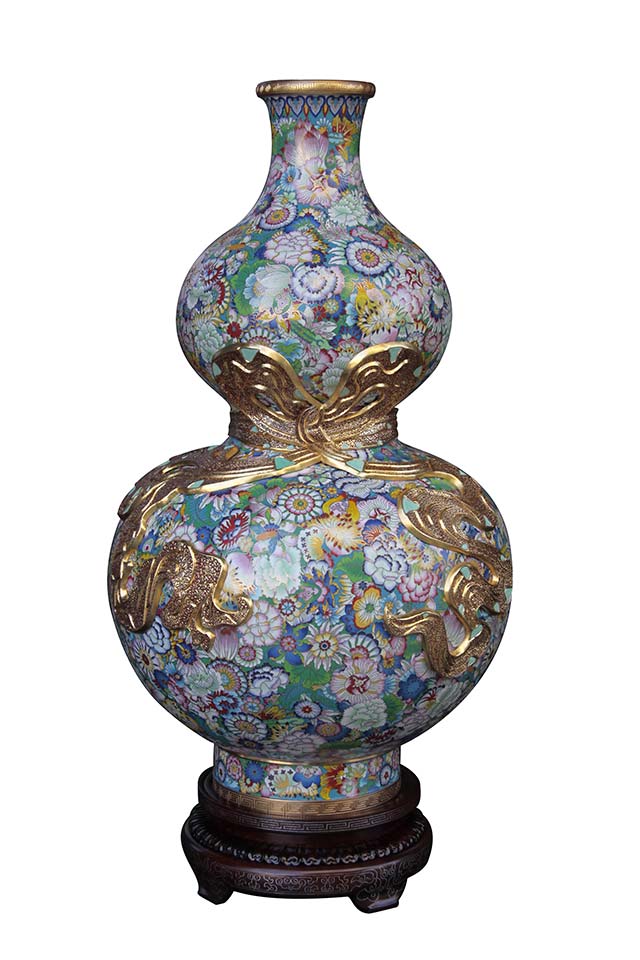 仿清中期掐絲琺瑯百花葫蘆瓶