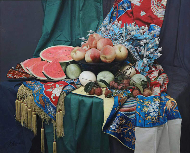 《有戲曲故事的靜物》于少非 布面油畫 80x90cm 2016年