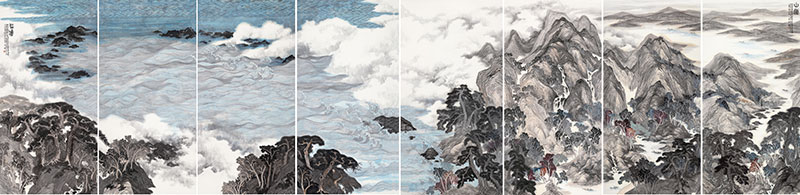 聽濤山岳圖 紙本設(shè)色 248×1032cm 2015年
