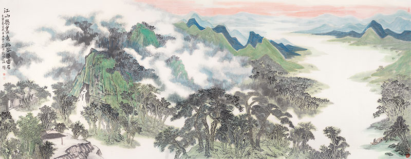 江山無盡意 幽谷樂安居 紙本設(shè)色 193x503cm 2022年