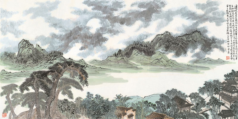 邊城 紙本設(shè)色 124x248cm 2023年
