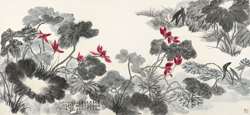 墨荷秋韻 紙本設(shè)色 115×248cm 2019年