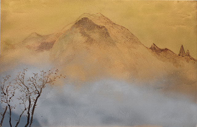 夕陽的九華佛光 漆畫 60x80cm 2024年
