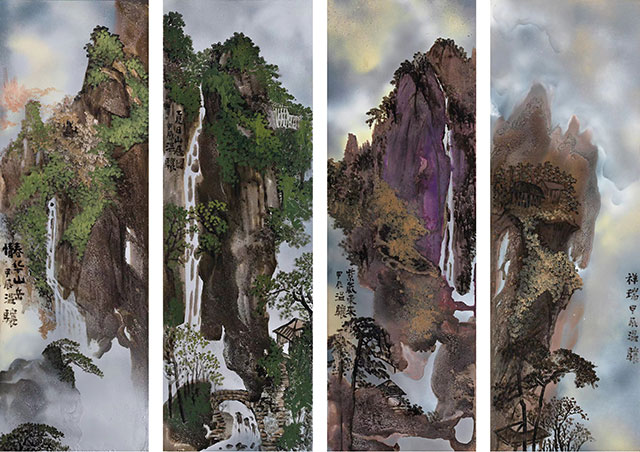 ??畫家溫驤1953年生于書香世家,自幼喜愛書畫,在其藝術(shù)道路的發(fā)展歷程中,他既持之以恒地學(xué)習(xí)中國畫,又對工藝美術(shù)領(lǐng)域進(jìn)行探索研習(xí),學(xué)藝背景極為豐富且轉(zhuǎn)益多師。在中國畫領(lǐng)域他博采眾長,青年時(shí)期于故宮臨摹古畫的經(jīng)歷為他積累了豐富的臨摹經(jīng)驗(yàn),加深了對傳統(tǒng)中國畫的理解;80年代以來跟隨當(dāng)代山水畫名家近距離學(xué)習(xí)的過程,使其進(jìn)一步在山水畫領(lǐng)域集古納今。此外,他還負(fù)笈東渡,結(jié)識東山魁夷、平山郁夫、加山又造等日本著名畫家,東瀛漆畫的制作工藝和日式繪畫的裝飾風(fēng)格為他的漆畫與中國畫創(chuàng)作帶來了啟發(fā)。豐富的人生經(jīng)歷以及對藝術(shù)的執(zhí)著追求,使溫驤的作品面貌集眾家之所長,而對中國傳統(tǒng)文化多年的見習(xí)與體悟促使他將對自然的凝思轉(zhuǎn)化為內(nèi)在心性的獨(dú)特體驗(yàn),從而落筆于對文人氣韻的抒發(fā)。