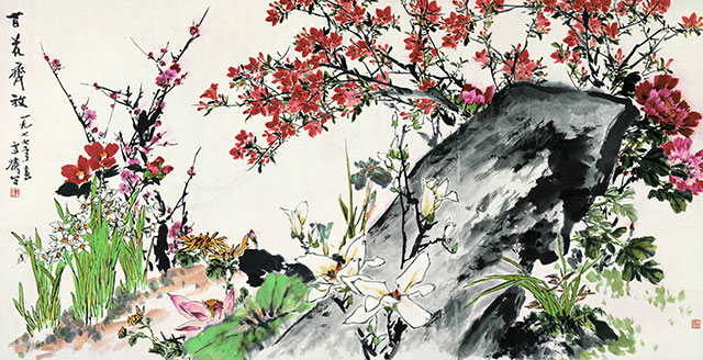 百花齊放 王雪濤 170cm×340cm 紙本設(shè)色 1977年