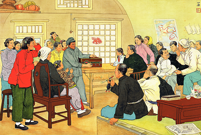 收音機(jī)里論英雄 古一舟 68.5cmx101.5cm 紙本設(shè)色 1958年