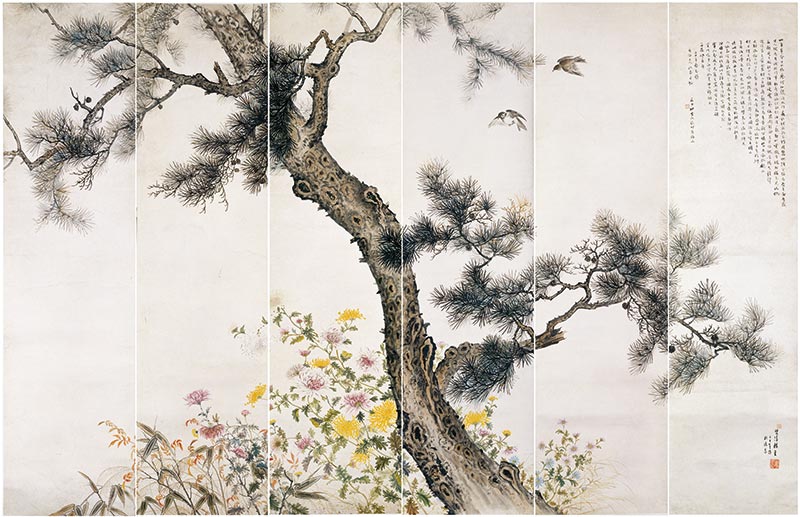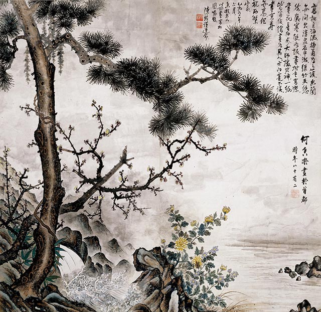 《松·菊》 何香凝 172×273cm 設色紙本 1931年 何香凝美術館藏