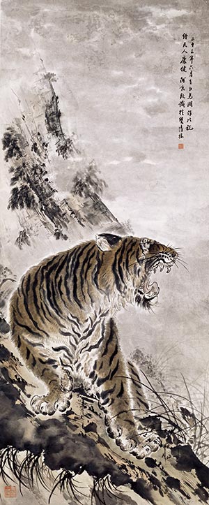 《虎》 何香凝 147cm×61cm 水墨淺設色紙本 1934年 何香凝美術館藏