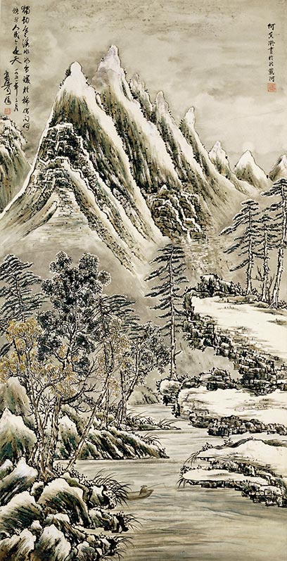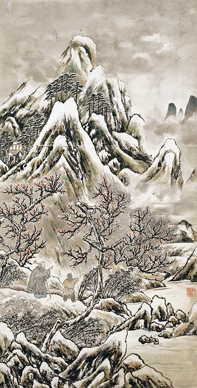 《賞雪圖》 何香凝、傅抱石 132cm×37cm 設色紙本 1962年 何香凝美術館藏