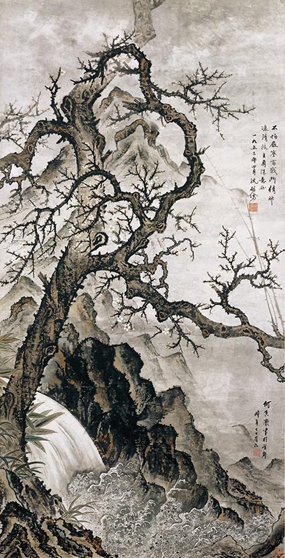 《寒梅有深意》 何香凝 166cm×85cm 水墨淺絳紙本 1953年 何香凝美術館藏