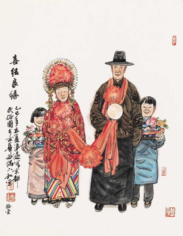 老北京煙火人家-之喜結(jié)良緣 紙本設(shè)色 49cmx38cm 2025年