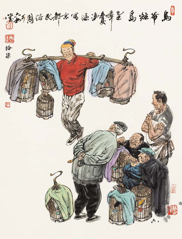 老北京煙火人家之鳥爺炫鳥 紙本設(shè)色 49cmx38cm 2025年