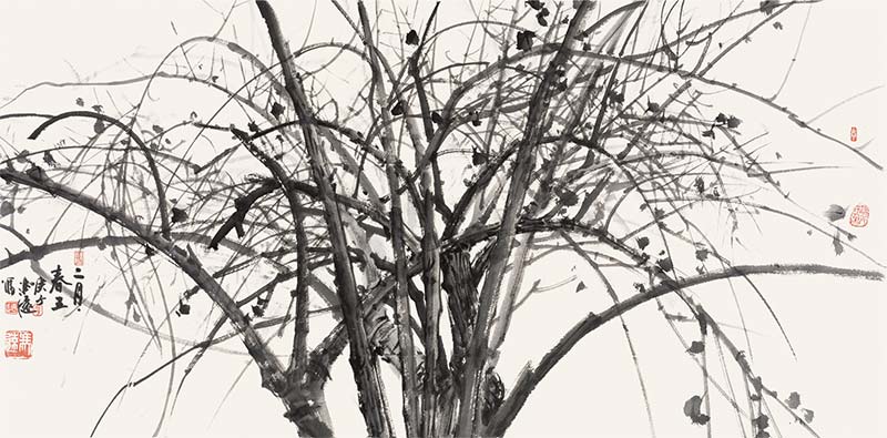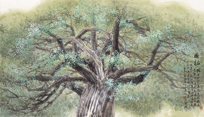 國槐 紙本設(shè)色 115cmx202cm 2007年