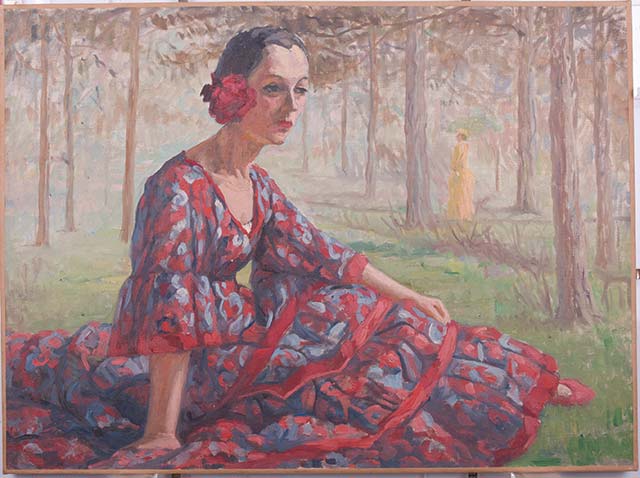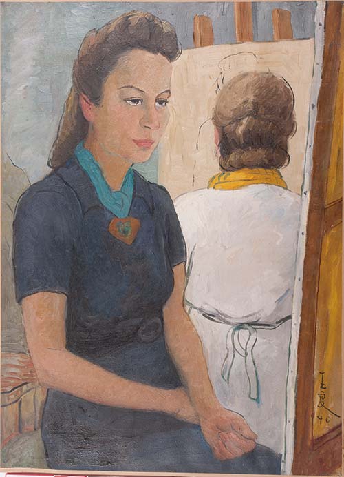 ??這一時期自畫像中,人物造型融入白描的影子,目光日益堅定。有學者指出,她的自畫像“是她人生不同階段對自我認知轉變的視覺記錄,有助于厘清女性畫家從他者凝視到自我認可的過程”。