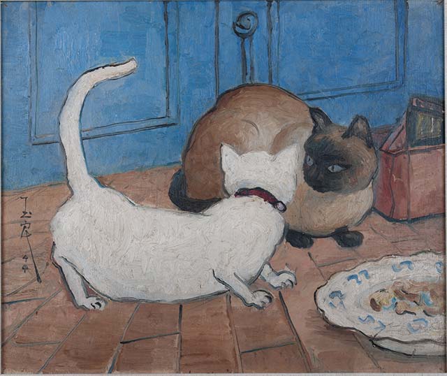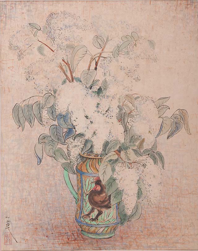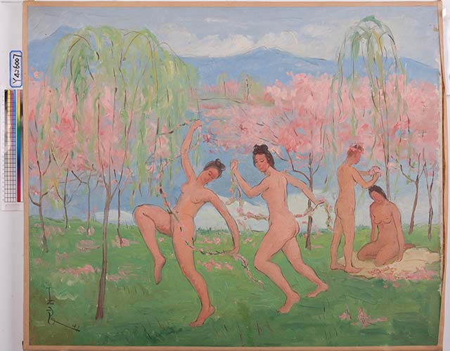 ??1942年,旅居法國的潘玉良全面開啟彩墨畫創(chuàng)作,以毛筆和墨彩在宣紙上作畫,將中國線條與西畫色彩相融合。油畫方面,她積極吸收后印象派、野獸派影響,畫面色彩和形體發(fā)生明顯變化,同時回望中國傳統(tǒng)繪畫,在紛繁的西畫色彩中融入國畫的線條勾勒,蘊藏東方藝術的意境與韻律。