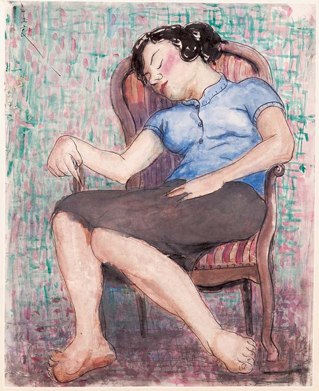 ??1937年,陳獨秀在獄中為她的白描作品題跋:“以歐洲油畫雕塑之神味,入中國之白描,余稱之曰新白描?!边@是對潘玉良“合中西于一冶”探索的最早見證。在她的自畫像中,旗袍、瓷瓶等東方元素開始出現(xiàn),流露出對民族文化身份的重新確認。