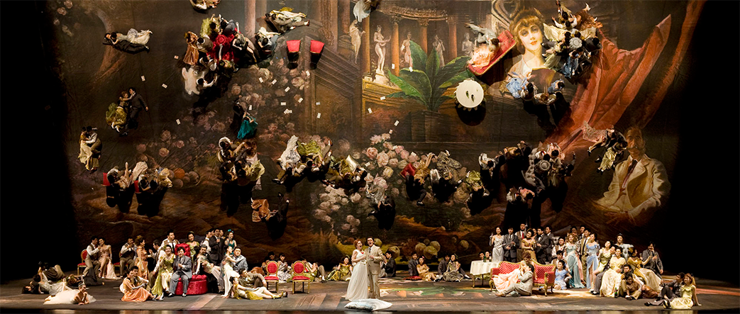 一個月后,薇奧萊塔獨自躺在臥室的床上,肺結核無休止地折磨著她。這位巴黎上流社會曾經(jīng)最為靚麗的社交明星到了蠟燭將熄的時刻。即使外面大街上熱鬧依舊,而在這間臥室里威爾第的音樂又把觀眾帶向了惆悵和惋惜。