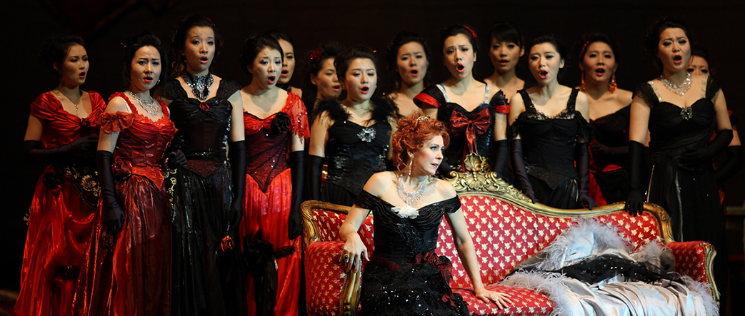 《茶花女》是意大利歌劇泰斗威爾第“通俗三部曲”中的最后一部(其余兩部是《弄臣》和《游吟詩人》),也是世界歌劇史上最賣座的經(jīng)典作品之一。故事藍本源自小仲馬著名小說《茶花女》,全劇共三幕,1853年3月6日首演于威尼斯鳳凰歌劇院,之后成為世界各大歌劇院最受歡迎的作品之一,至今盛演不衰。小仲馬曾無限感慨的說:“五十年后,也許誰也記不起我的小說《茶花女》了,但威爾第卻使它成為不朽?!备鑴 恫杌ㄅ分v述了巴黎交際花薇奧萊塔和青年阿爾弗萊德凄美的愛情故事,劇中優(yōu)美抒情的音樂旋律、真摯感人的詠嘆比比皆是,尤其是《飲酒歌》更早已成為人們最熟悉的歌劇唱段之一。1956年,《茶花女》作為新中國上演的第一部西洋歌劇與國人見面,距今已整整60年歲月。劇中動人的故事、美妙的旋律為觀眾長久銘記,而《茶花女》也被中國聽眾稱為“中國人最熟悉、最感親近的西洋歌劇”。