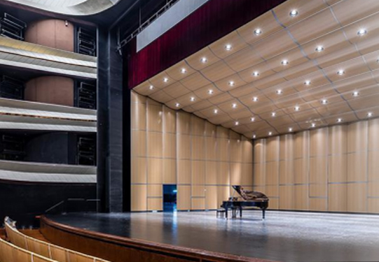 臺湖劇場舞臺的布局尺寸參考國家大劇院歌劇院,采用國際通用的“品”字形舞臺形式。舞臺區(qū)域面積2550㎡,包括架空式主舞臺、左右固定側(cè)舞臺、后舞臺和兩塊樂池升降臺。臺湖劇場配備了世界上比較先進(jìn)的舞臺燈光、音響設(shè)備,擁有相對完善的機(jī)械設(shè)備,可滿足歌劇、音樂會、舞劇、話劇、戲曲等舞臺藝術(shù)形式的合成排練和演出需要。