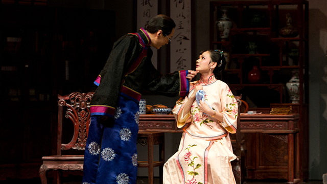 20年前,這座城市里出了一個出身貧寒的京劇男旦魏蓮生,不論是達官貴人、妙齡男女,甚至一般市民都被他的聲色所傾倒。他交往甚廣,常為窮苦的鄰居紓危濟困,頗受人們的敬慕。以走私鴉片起家的法院院長蘇弘基,過著醉生夢死的生活。他的四姨太玉春原是個煙花女子,后被蘇弘基贖出為妾。玉春懷著一顆爭取自由幸福的心,不甘整日過著囚籠般的富貴生活。她因學戲而結識了魏蓮生,向他傾訴了自己悲慘的身世,后趁蓮生到蘇府祝壽演出之前,將他請到自己的小樓上。他們二人過去的遭遇相近,又都淪為闊老們消愁解悶的玩意兒,失去做人尊嚴,因而由憐生愛,并商定私奔,走向自由。這時,蓮生從窗口摘下一枝海棠花送給了玉春。