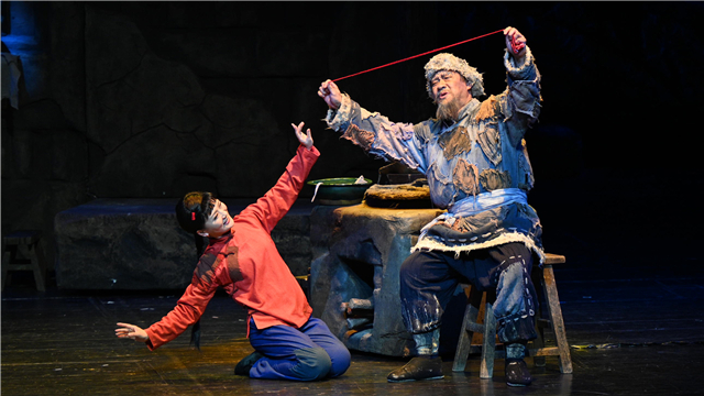 ??黃世仁婚事將近,為避“家丑”,黃家擬將喜兒賣給人販子。張二嬸得知后,幫助喜兒逃出黃家。大河邊蘆葦蕩中,追逐而來的黃世仁、穆仁智發(fā)現(xiàn)岸邊一只喜兒的鞋,判定喜兒投河而亡。喜兒躲過劫難,逃進(jìn)深山。