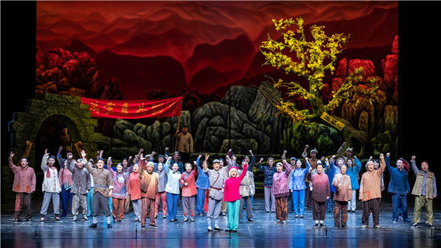 ??三年過去了,喜兒藏身山洞,因長(zhǎng)期缺鹽,渾身毛發(fā)變白,成為村民們傳說中的“白毛仙姑”。風(fēng)雨之夜,奶奶廟里,喜兒撞見并追打前來躲雨的黃世仁、穆仁智,被當(dāng)成“鬼”。秋天,已是八路軍的大春回到村中,當(dāng)?shù)弥鞍酌晒谩钡氖虑楹螅瑳Q定上山一探究竟。大春、大鎖在山洞里追上喜兒,一番盤問之后,終于明白眞相。喜兒、大春相認(rèn),悲喜交迸?!疤柍鰜砹?!......”大春帶喜兒下山報(bào)仇。村口斗爭(zhēng)會(huì)上,喜兒控訴黃世仁,村民們怒不可遏。黃世仁、穆仁智被送交人民政府公審法辦。“舊社會(huì)把人逼成鬼,新社會(huì)把鬼變成人!”喜兒們?cè)谛律鐣?huì)里終于翻身做主人。
