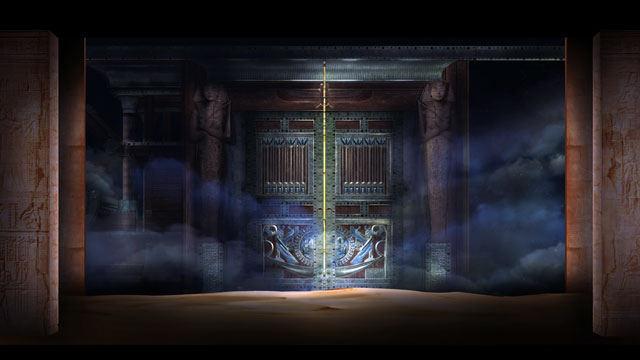 第四幕,第四場。阿依達(dá)與拉達(dá)梅斯殉情的二重唱。盡管他們是被判決活埋處死的,但這也是他們在面臨忠貞考驗時決然的自我選擇。死亡對于這一對注定無法終成眷屬的癡情男女而言,或許是別無選擇的解脫,也是浪漫主義時期悲劇作品最眾望所歸的結(jié)局。當(dāng)石墓的門被石磚封死,墓室里的氧氣迅速稀薄,兩個人的呼吸越發(fā)困難,但卻在平靜相擁之中完成了靈魂的結(jié)合與升華。威爾第的妙筆將這種生理上的痛苦與精神上愉悅?cè)诤显谝黄?,每一個向上飛升的樂句似乎都無力唱完,卻又完整的迸發(fā)著幸福感。這首二重唱與《弄臣》、《茶花女》最后的二重唱一樣,用充滿虔誠與幸福感的音樂,倍升悲劇性的結(jié)局的感染力。