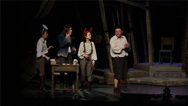 ??全劇三十余名角色,全部由四名演員扮演。四名演員除了擔(dān)當(dāng)整個(gè)故事的講述者、扮演全部角色外,每人還要講述和扮演一個(gè)年齡時(shí)期的威廉·莎士比亞:童年、青年、中年、老年。