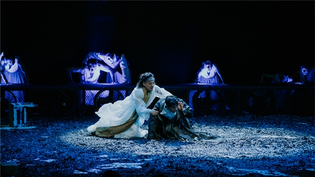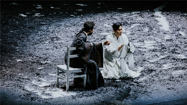 ??話劇《戎夷之衣》故事改編自《呂氏春秋·恃君覽第八》中戎夷解衣的故事。戎夷是墨家弟子,崇尚“敬天”“貴義”“兼愛”“非攻”。雪夜,以義聞名的師父戎夷和人品可疑的弟子被關(guān)在城門外。若要一人活下來,另一人必得脫下棉衣而凍死。師父選擇了讓衣而死,弟子則受衣而活。此后余生中,每當?shù)茏酉虺晒Φ碾A梯升上一步,都會經(jīng)歷一次與師父的靈魂對視、一次良心與得失的拷問,他都選擇了背過身去,走向與師父的義路截然相反的方向,直至成為頂級“人生贏家”,直至——從現(xiàn)世巔峰跌進永死的深淵。在人生的最后時刻,弟子作何感想?墨家崇尚的人類普適而恒久的道德價值,從弟子的命運軌跡中,穿透傳統(tǒng)文化的力量,從而啟發(fā)觀眾在當下無限復(fù)雜的社會去反思去自警去追求向善的道德。