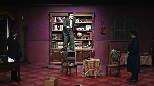 ??我們的話劇《嫌疑人福爾摩斯》,是在原著的基礎(chǔ)上創(chuàng)作的新故事——福爾摩斯疑似走上了犯罪道路、兄長麥克羅夫特決定大義滅親、好友華生醫(yī)生進(jìn)退兩難……我們試圖以新的情景假定,去探索福爾摩斯、華生、麥克羅夫特、雷斯垂德等角色在新的故事可能下展現(xiàn)的新的魅力。