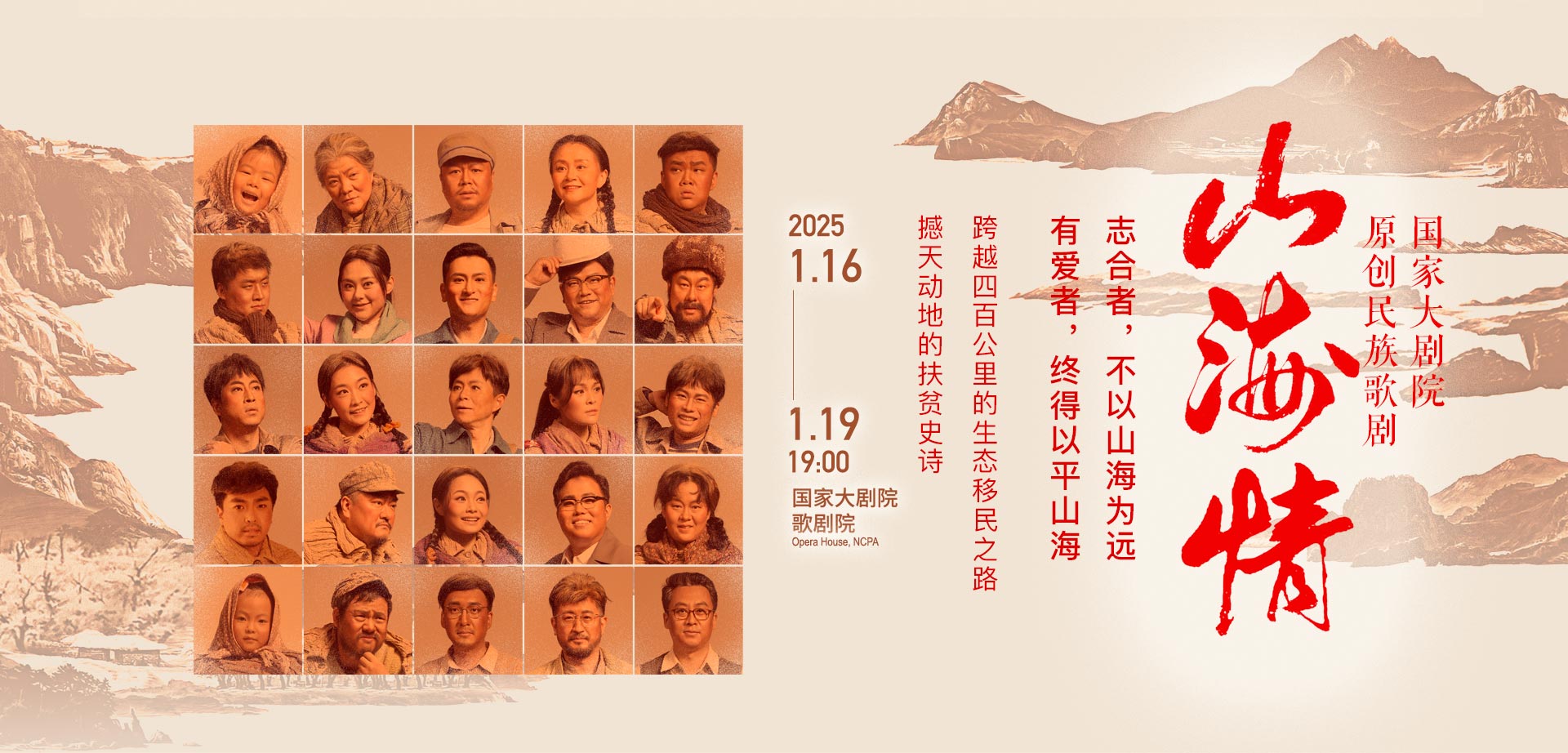 ??為反映黨自十八大以來脫貧攻堅、鄉(xiāng)村振興戰(zhàn)略取得的歷史性成果,書寫生生不息的人民史詩,國家大劇院根據(jù)2021年熱播同名電視劇改編,于2022年策劃推出原創(chuàng)民族歌劇《山海情》。該劇創(chuàng)排得到國家廣電總局電視劇司的大力支持,由中共北京市委宣傳部、中共福建省委宣傳部、中共寧夏回族自治區(qū)委員會宣傳部、國家大劇院聯(lián)合出品,東陽正午陽光影視有限公司榮譽出品,于2022年9月30日重磅亮相,向黨的二十大獻禮。