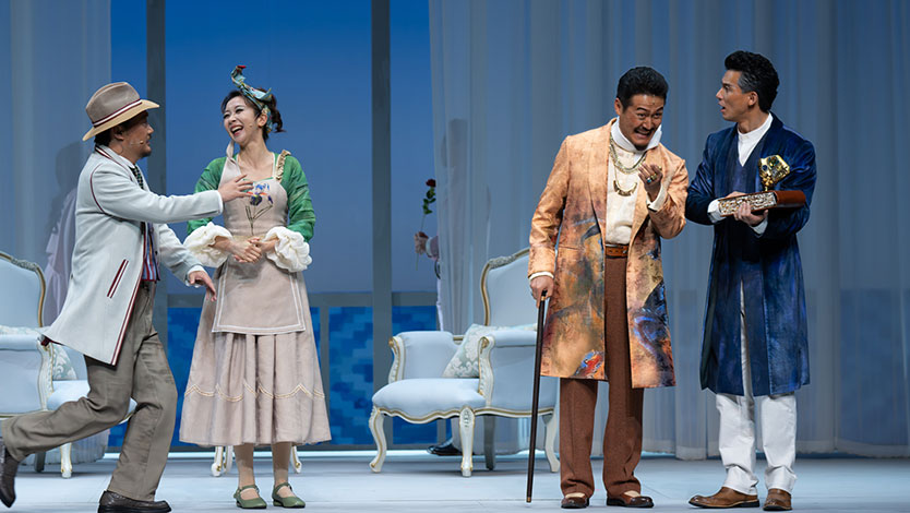 ??造化弄人,在各種陰錯陽差中,圖法蒂諾一仆二主的秘密多次險些暴露,每次都因為他的“機智”而遮掩過去,而這對戀人卻也每次都擦肩而過。在各種啼笑皆非的連環(huán)誤會和將錯就錯之后,故事總算迎來了一個圓滿的結局,有情人終成眷屬,甚至圖法蒂諾也迎來了屬于自己的愛情。