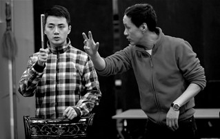 馮遠(yuǎn)征收余少群為徒已近兩年時(shí)間,他介紹,以前給余少群上課都是余少群到自己家里,讓他看一些東西,或者是余少群在拍戲過程中遇到什么問題,給他打電話。像這樣每天都在一起排一個(gè)戲,這還是第一次。馮遠(yuǎn)征直言:“你可以說,我排這個(gè)戲是捧余少群,但實(shí)際上我不是。我是希望他在這個(gè)作品中學(xué)到更多東西,我也可以在這一個(gè)半月的時(shí)間里,特別系統(tǒng)地教給他很多東西。所以,我大概半年前就讓余少群和公司請假,我也親自給他們公司老板打電話,告訴他們這對余少群是特別重要的學(xué)習(xí)機(jī)會,讓他們不要給余少群安排什么事情?!?