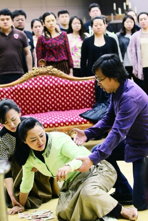 國家大劇院歌劇節(jié)·2014中,憑借精美的制作和詩意的舞美呈現(xiàn)廣受業(yè)內(nèi)外好評的大劇院版威爾第歌劇《茶花女》將再度亮相舞臺。目前,該劇正在火熱排練中,昨天下午,大劇院邀請媒體走進排練廳探班,親自到京督陣復排的德國導演海寧·布洛克豪斯帶領主演們展示了劇中的精彩片段。據(jù)悉,該劇將于4月10日至12日正式上演。