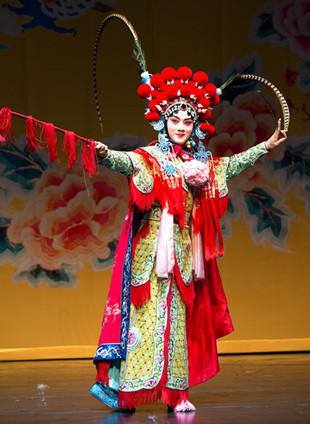 序幕結(jié)束后,燈光漸漸亮起,一塊金色“守舊”從天而降,密集的鑼鼓點(diǎn)中,一襲武旦裝扮的余少群盛裝亮相,名伶的悠然自得躍然舞臺(tái)之上。在隨后的劇情發(fā)展中,他對(duì)貧困百姓的仗義相助、經(jīng)過(guò)玉春點(diǎn)撥后的懵懂猶疑、最終相約出走的希望滿懷以及最終事態(tài)敗露后的無(wú)怨無(wú)悔,這一系列的人物心理線索,余少群全部一氣呵成地詮釋完滿,不露絲毫雕琢痕跡。而配合情節(jié)發(fā)展穿插其中的戲曲功底展露,更是為角色增光添彩,京劇武旦戲《昭君出塞》、昆曲《游園驚夢(mèng)》,雖然只是短短幾句唱腔與身段表現(xiàn),但名伶風(fēng)范即刻呈現(xiàn)。