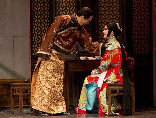 余少群(左)與程莉莎(右)完美詮釋了京劇名伶魏蓮生與官僚姨太太玉春之間的愛(ài)情悲劇 高尚/攝