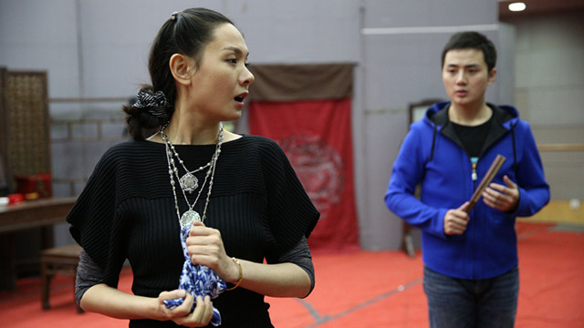余少群與程莉莎正在排演魏蓮生與玉春在劇中初次相見(jiàn)的場(chǎng)景 高尚/攝