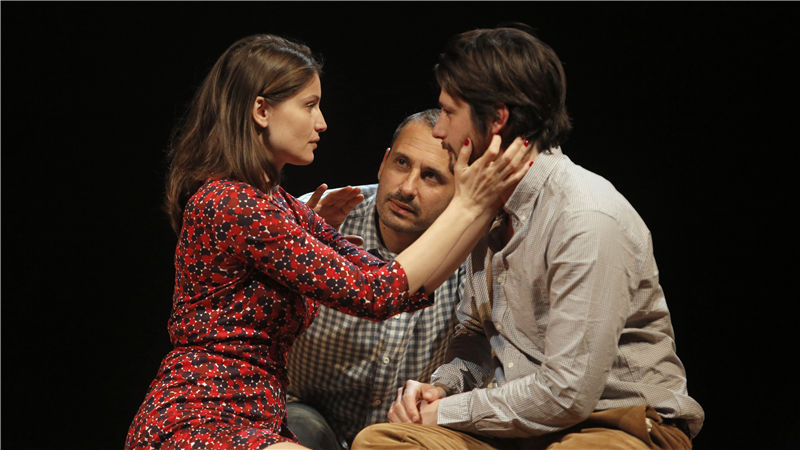 ??此層面上,法國話劇版《婚姻生活》與伯格曼的作品也一脈相承。妻子與丈夫的扮演者蕾蒂西婭·卡斯塔和拉斐爾·佩松納茲,在法國一個是超級名模一個是當(dāng)紅小生,駕馭舞臺的經(jīng)驗均是一流。依靠兩條長凳的組合方式、光線的明暗、服裝的差異作出場景區(qū)分,暗示時間流逝的舞臺上,兩人時而平靜時而瘋狂,這刻如膠似漆那刻互相撕咬,共筑一出婚姻圍城好戲。