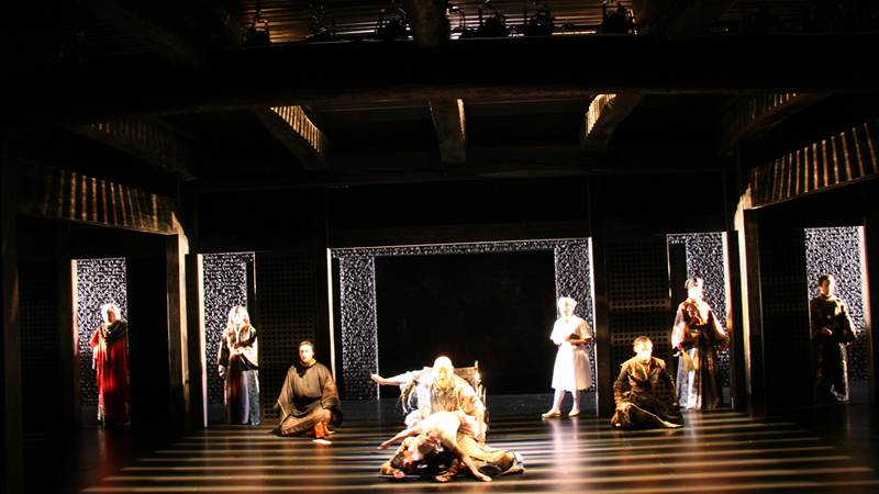 ??鈴木忠志版的《李爾王》在每一輪演出時都由多國演員使用母語演出,這不僅讓這部世界級的戲劇經(jīng)典作品呈現(xiàn)出多元素的國際性,更展現(xiàn)出“鈴木訓(xùn)練法”的獨(dú)特魅力。鈴木忠志稱:“我的劇團(tuán)團(tuán)員來自不同的國家,平常大家交流基本上是依靠英語,但是在舞臺上我要求他們使用自己的母語,因?yàn)樯勘葋喌墓适麓蠹叶贾溃⑶宜麄冇玫氖且粯拥挠?xùn)練方式,演員擁有同樣的能量。因此在舞臺上,他們依靠的也是這種能量互相交流,這就像是一個迂回的路徑,因此演員之間并不會產(chǎn)生交流的障礙?!痹诩磳⒘料?019國家大劇院國際戲劇季的此版《李爾王》中,來自中國、韓國、日本、美國、俄羅斯五國的演員將同臺演繹,其中,中國演員田沖將在劇中飾演伯爵葛洛斯特的兒子愛德伽,張玙妤將在劇中飾演李爾的小女兒考狄利婭。在鈴木忠志執(zhí)導(dǎo)話劇《酒神狄俄尼索斯》中有著出色表現(xiàn)的田沖曾在《李爾王》中飾演過“李爾”一角,并獲得了導(dǎo)演的高度認(rèn)可。他表示:“無論哪種文化背景,情感都是相通的。我們也沒有嚴(yán)格區(qū)別所謂東西方的表演方式,所有演員在舞臺上都是高度統(tǒng)一的,這種統(tǒng)一范式來源于鈴木忠志戲劇的內(nèi)在程式規(guī)范,就如同一場足球比賽,球員可能來自世界各地,但比賽規(guī)則是統(tǒng)一的,世界各地的球迷也都能看懂?!弊鳛榫哂锈從局抑觉r明美學(xué)風(fēng)格的代表作之一,《李爾王》不僅展現(xiàn)出鈴木忠志戲劇創(chuàng)作中特有的跨文化視角,同時也體現(xiàn)著鈴木忠志致力于將日本傳統(tǒng)能劇文化與當(dāng)代戲劇相結(jié)合的獨(dú)特美學(xué)風(fēng)格,劇場的空間感、演員的肢體表現(xiàn)能力都將在這部《李爾王》中得以再次呈現(xiàn)與釋放。