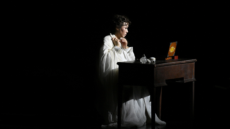 ??國家大劇院版《茶花女》以擁有獨特“鏡面”舞臺視覺而讓觀眾印象深刻。本輪演出,這面264平米的巨大鏡面再一次在虛實交錯間,帶觀眾走到“茶花女”的身邊,旁觀與見證“茶花女”薇奧萊塔的愛情、生活與香消玉殞。