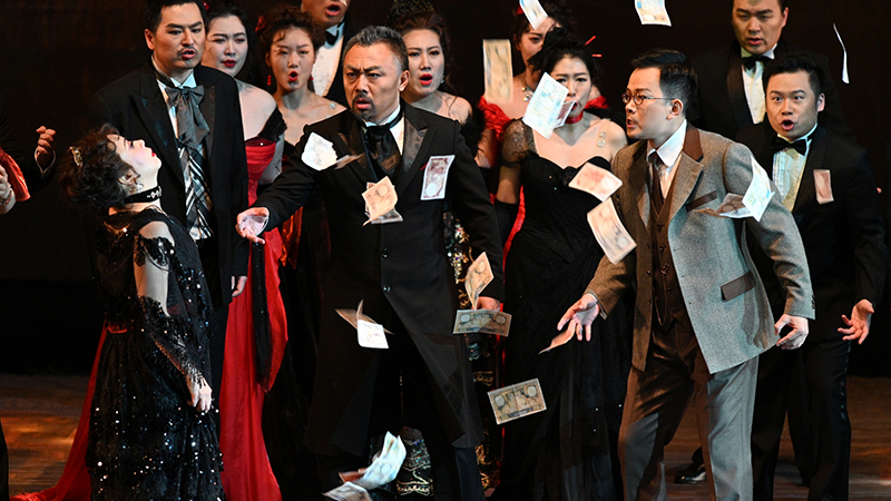 ??早在本輪演員名單敲定后,就有不少觀眾開始期待著名男中音歌唱家廖昌永與著名男高音歌唱家石倚潔在歌劇舞臺的首度合作。石倚潔表示:“廖昌永老師是我自高中時期的恩師,經(jīng)過多年努力終于和老師共同站在歌劇舞臺表演,感慨萬千!”從昔日的“師與生”到同臺飾演“父與子”,在演出中,“清冽男高音”與“渾厚男中音”不僅融洽呈現(xiàn)完美和聲,更是充分表現(xiàn)出阿爾弗萊德對于真摯愛情的向往,以及父親阿芒的愛子情深。在此之外,被指揮家余隆盛贊的國家大劇院合唱團也以不俗的表現(xiàn),刻畫出浮華巴黎的社會群像。