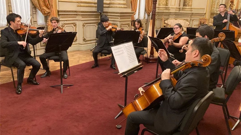 ??首演現(xiàn)場(chǎng),一幅幅極具感染力的木刻版畫在舞臺(tái)上鋪陳開來。伴隨著寶塔屹立的“延安風(fēng)景”,由呂科鏑飾演的音樂家、李晨賽飾演的舞蹈家、汪子涵飾演的文學(xué)家、孫科飾演的美術(shù)家,與其他文藝工作者滿懷理想奔赴革命圣地。