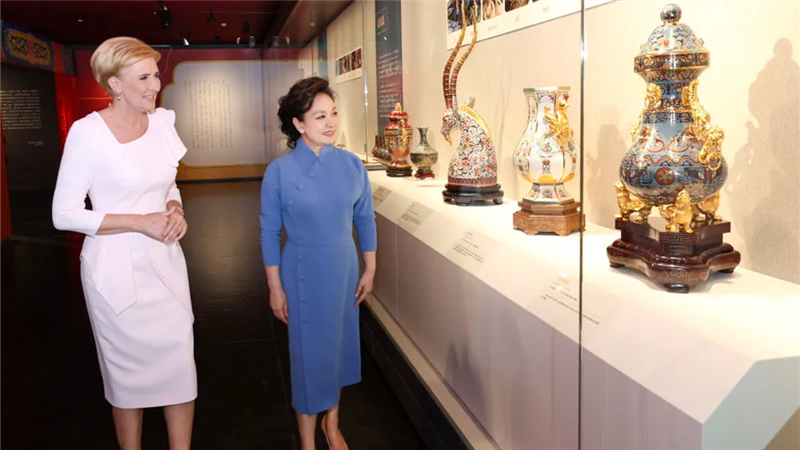 ??兩國元首夫人一同參觀大劇院設(shè)施,并饒有興致地觀看藝術(shù)館“北京燕京八絕非遺藝術(shù)精品特展”。彭麗媛表示,中波兩國都有著悠久歷史傳統(tǒng)和深厚文化底蘊,近年來,雙方人文交流日趨活躍。相信隨著中波文化交流互鑒不斷豐富,兩國人民之間的相互了解和友誼也將日益加深。
