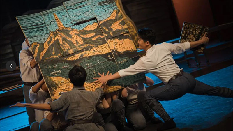 ??舞劇《楊家?guī)X的春天》的創(chuàng)作靈感來(lái)自于美術(shù)瑰寶——延安木刻版畫。在物資匱乏但精神富足的年代,藝術(shù)家以生動(dòng)筆觸描繪出延安時(shí)期質(zhì)樸而浪漫的生活與戰(zhàn)斗場(chǎng)景。那些鮮活深刻的人物和畫面,成為了舞臺(tái)創(chuàng)作的源泉。劇中的“藝術(shù)家”角色是作品表達(dá)的主體,他們從全國(guó)各地奔赴延安,融入火熱的生活與革命實(shí)踐,實(shí)現(xiàn)了思想的轉(zhuǎn)變和精神的升華,開創(chuàng)了文藝的春天。