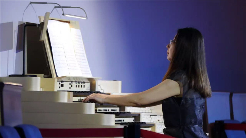 國(guó)家大劇院音樂(lè)廳“鎮(zhèn)廳之寶”——擁有94根音栓,6500余根銅管的管風(fēng)琴在著名管風(fēng)琴演奏家沈凡秀的傾情演奏下,再度呈現(xiàn)了它那恢弘之音,卡米爾·圣-桑的交響樂(lè)巔峰之作——C小調(diào)第三交響曲“管風(fēng)琴”響徹云霄,柔板、急板、快板的巧妙切換讓聽眾無(wú)不為之傾倒,讓觀眾感受到別樣的神圣和莊嚴(yán)。