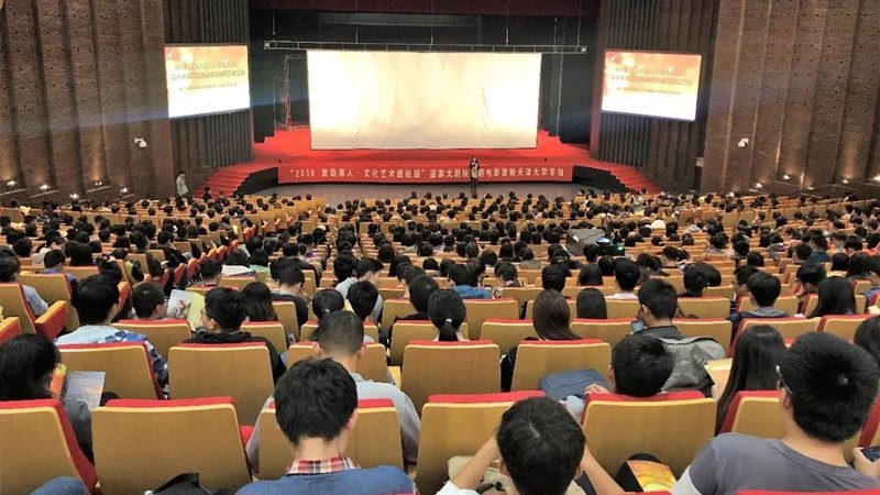??天津大學(xué)黨委學(xué)工部副部長(zhǎng)李靜松、中國(guó)銀行天津分行個(gè)人金融部副總經(jīng)理呂永東、中國(guó)銀行天津南開(kāi)支行副行長(zhǎng)張軍、國(guó)家大劇院付博、孫恒老師出席了本次活動(dòng),近1000名天大師生共同觀看了整場(chǎng)展映。